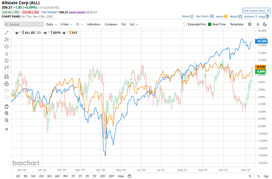 Shares of Allstate rose 1.7% following its Q3 2025 results on Nov. 5 as adjusted EPS of $11.17 surged from $3.91 a year ago and beat estimates, reflecting strong operational recovery. The company’s pretax income jumped to $4.8 billion from $1.4 billion, driven by a 13.5% decline in total costs and expenses and a sharp reduction in catastrophe losses to $558 million from $1.7 billion.
