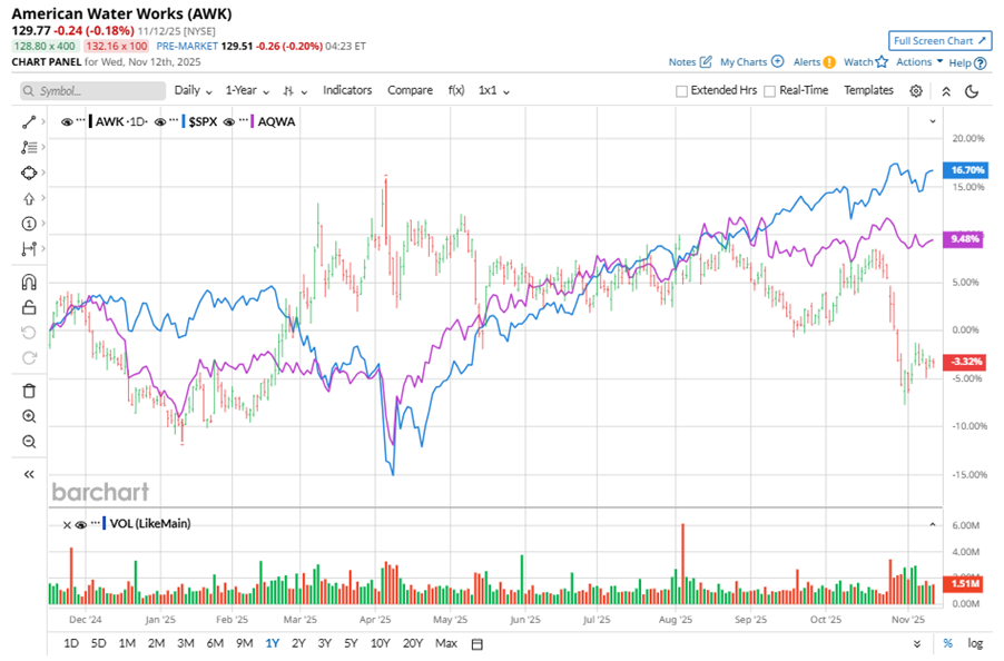 Shares of this water utility giant have underperformed the broader market over the past year. AWK has declined 2% over this time frame, while the broader S&P 500 Index ($SPX) has rallied nearly 14.5%. In 2025, AWK stock is up 4.2%, compared to SPX’s 16.5% rise on a YTD basis.