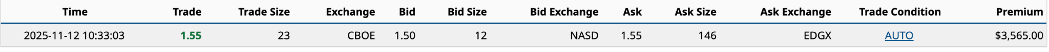Using the $1.50 ask price from the put and the $1.55 ask price for the call from yesterday’s one large trade -- more than 10 contracts -- you get a net debit of $3.05 or 13.6% of yesterday’s $22.40 closing share price. That’s higher than 10%, which I usually avoid, and even though it’s above the expected move, I’ve got a hunch volatility will persist through the company’s Q3 2025 earnings report, out next Thursday before the markets open.