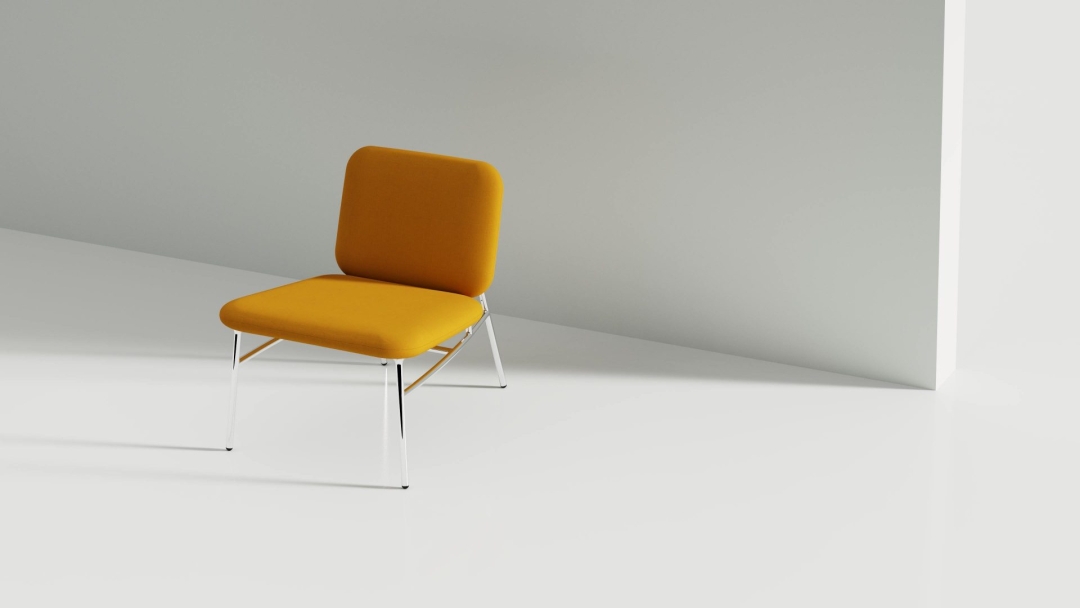 The Klein Lounge Chair continues this dialogue between comfort and precision. Designed for hospitality and modern interiors, Klein is compact, lightweight, and visually refined. It is built with 304 stainless-steel tubing, with smoothly transitioning joints that connect the base to the upholstered seat and back. Concealed screws make the structure appear as one continuous piece. Upholstered in vibrant, durable fabric from Maharam, the chair offers both color and longevity. The angled posture encourages natural relaxation, while the flexible backrest provides gentle, responsive support. Its simple and elegant form brings balance and calm to any environment.